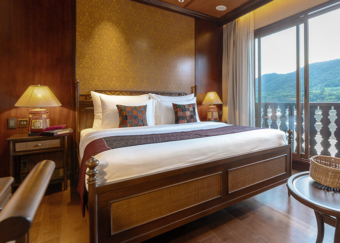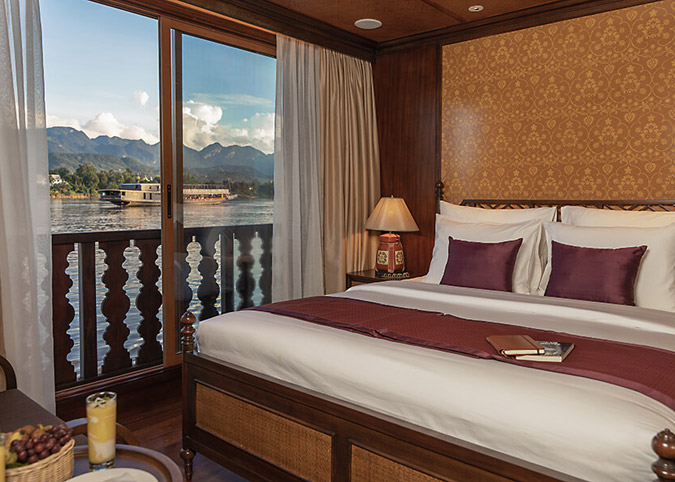 There are four Deluxe cabins on the main deck each has the space of 20 square meter. They also have floor to ceiling windows looking out the river and the French balconies.