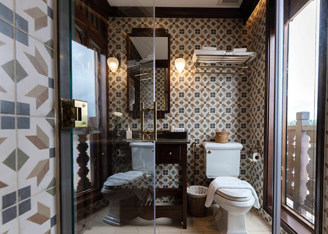 Step aboard Anouvong, and prepare to be captivated by a tapestry woven from ancient Laotian artistry and the elegant whisper of French colonialism. Walls adorned with intricate silk tapestries tell the tales of mythical giants and celestial dancers, while polished teak furniture speaks of colonial grandeur. Every corner reveals a delicate dance of influences, where lotus motifs dance across stained glass in the sunlit salon, and hand-painted murals echo the vibrant colors of Laotian temple murals.