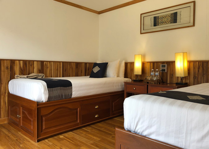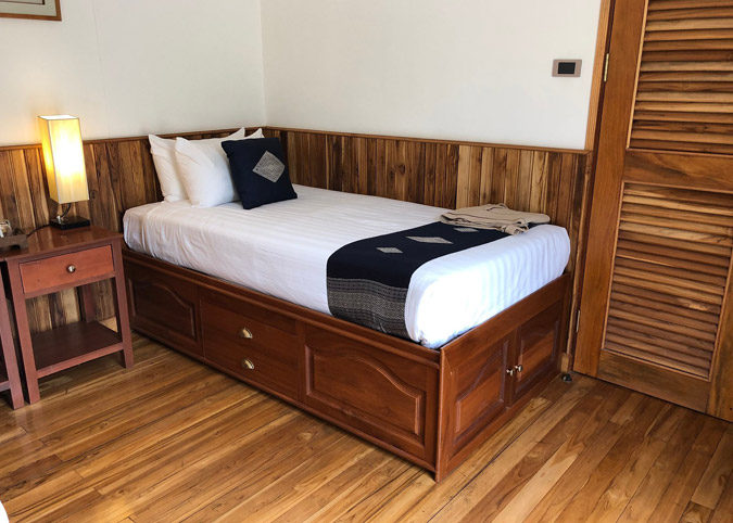 There are 10 cabins on the main deck with 14 square meter and each is equipped with twin beds, air-conditioner, long window looking out to the. All the rooms and facilities are sourced locally of the highest class.